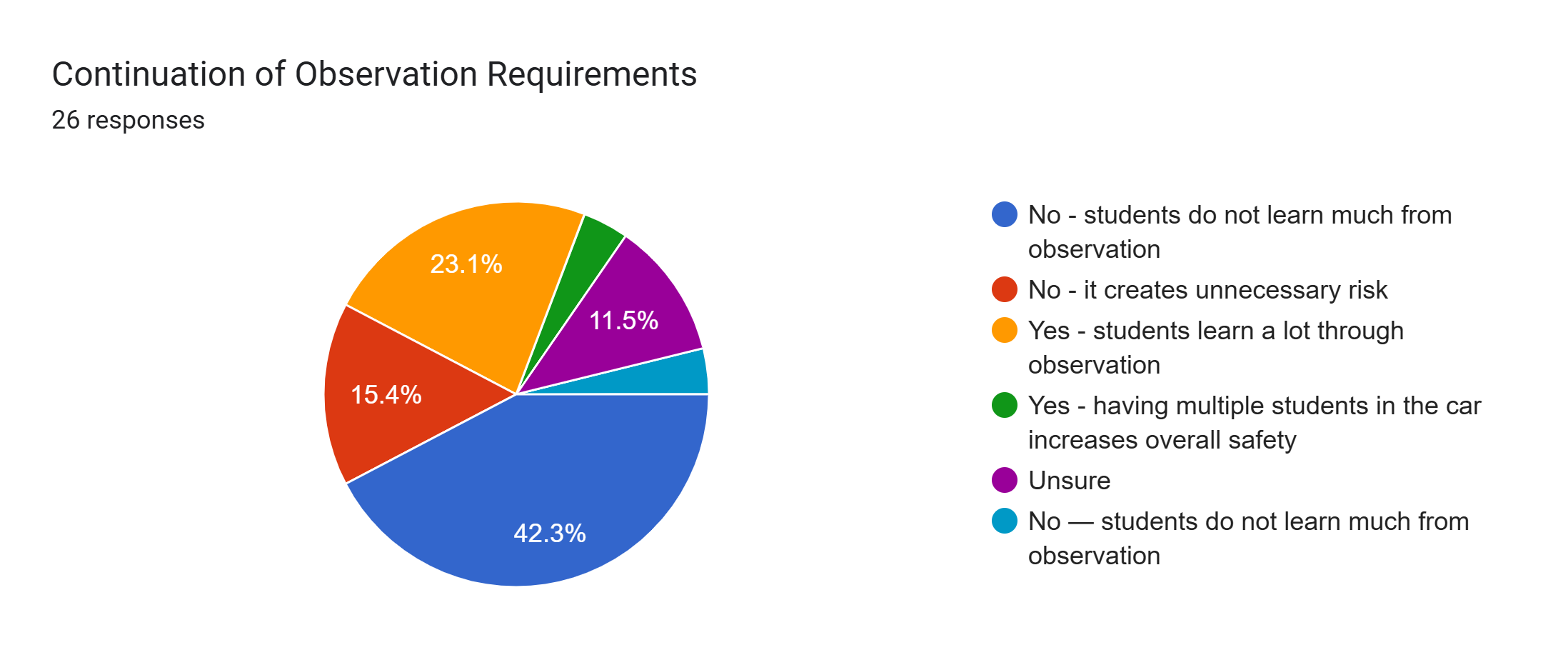 The survey focused on key operational and instructional areas, including behind-the-wheel requirements, the use of simulation and electronic devices, student volume capacity, and the potential impacts of regulatory changes on member schools.